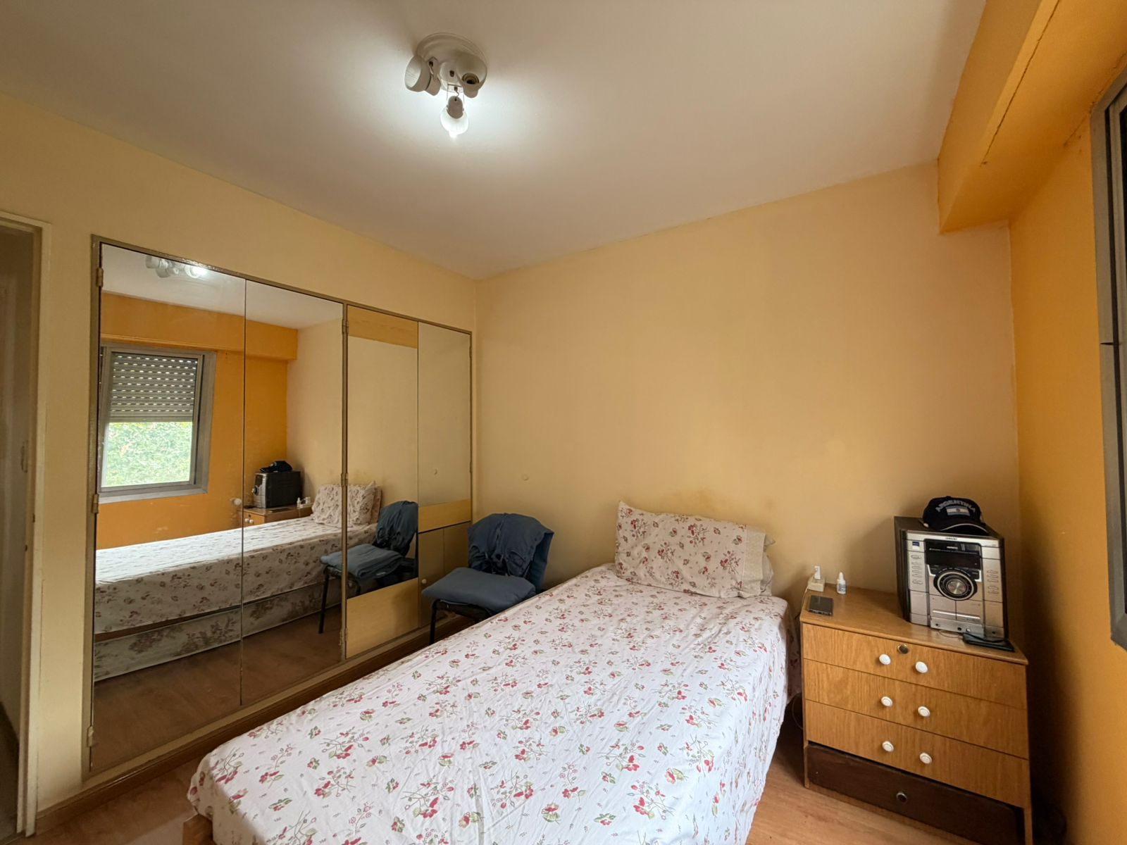 Posee dos habitaciones con ventanas y placard amurado a la pared, cocina, living comedor amplio con buena iluminación natural y baño completo. Excelente estado!