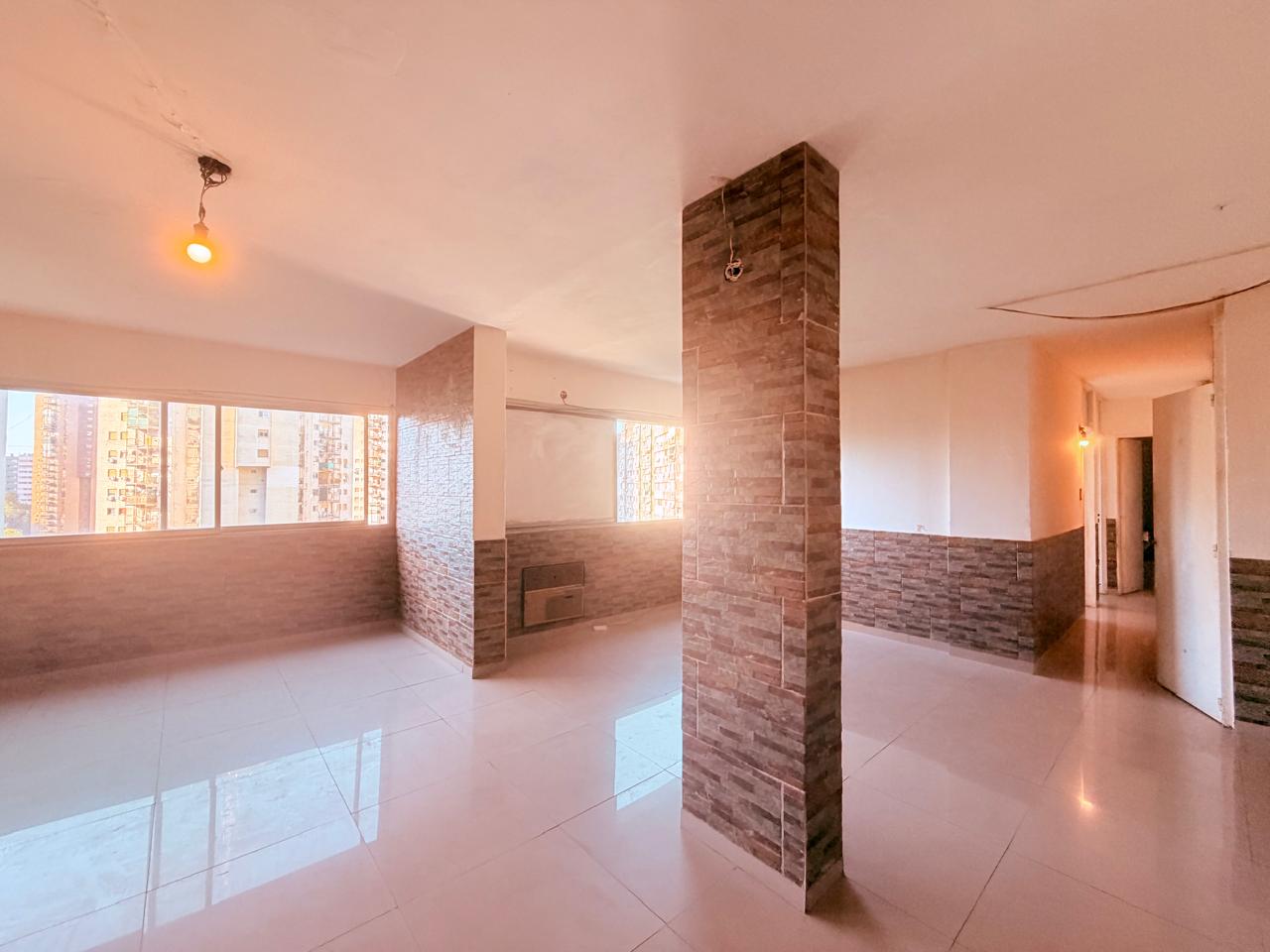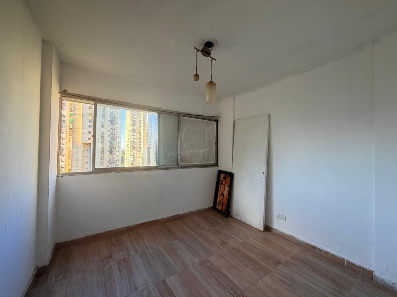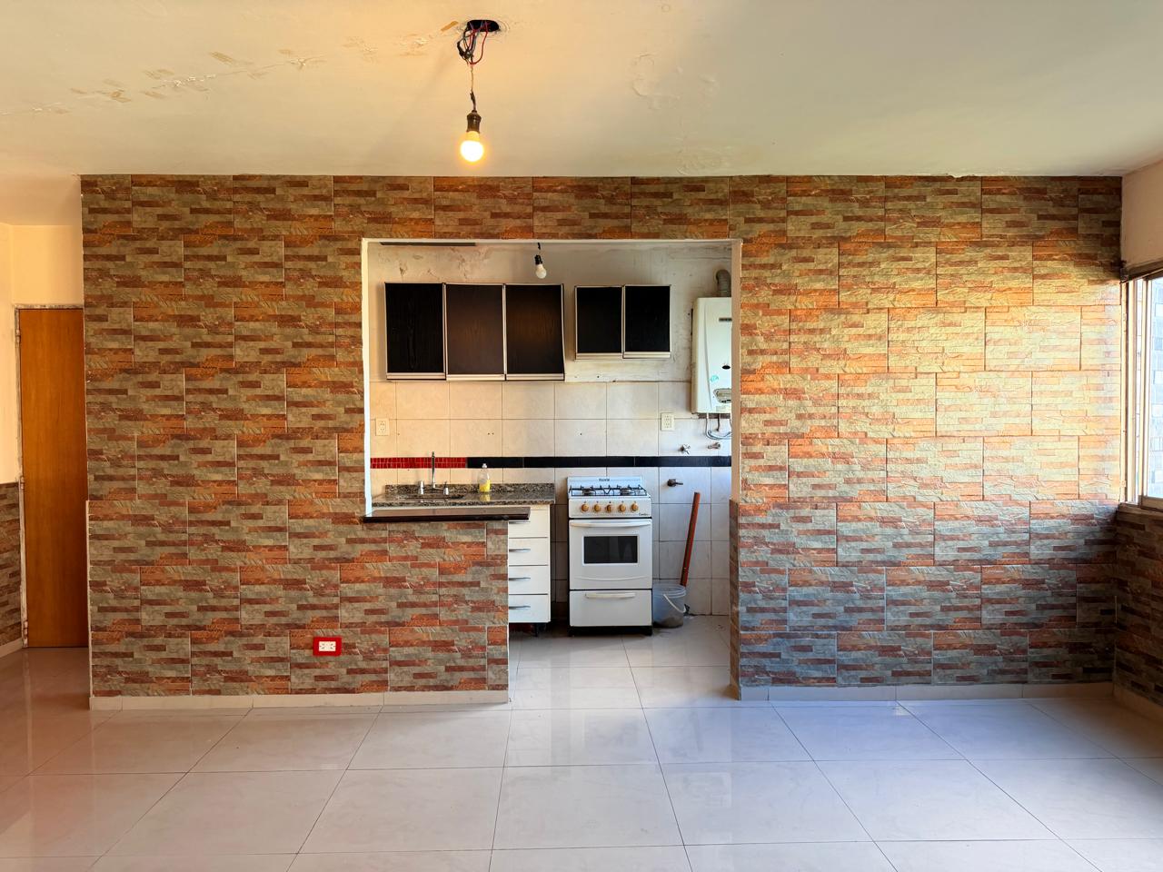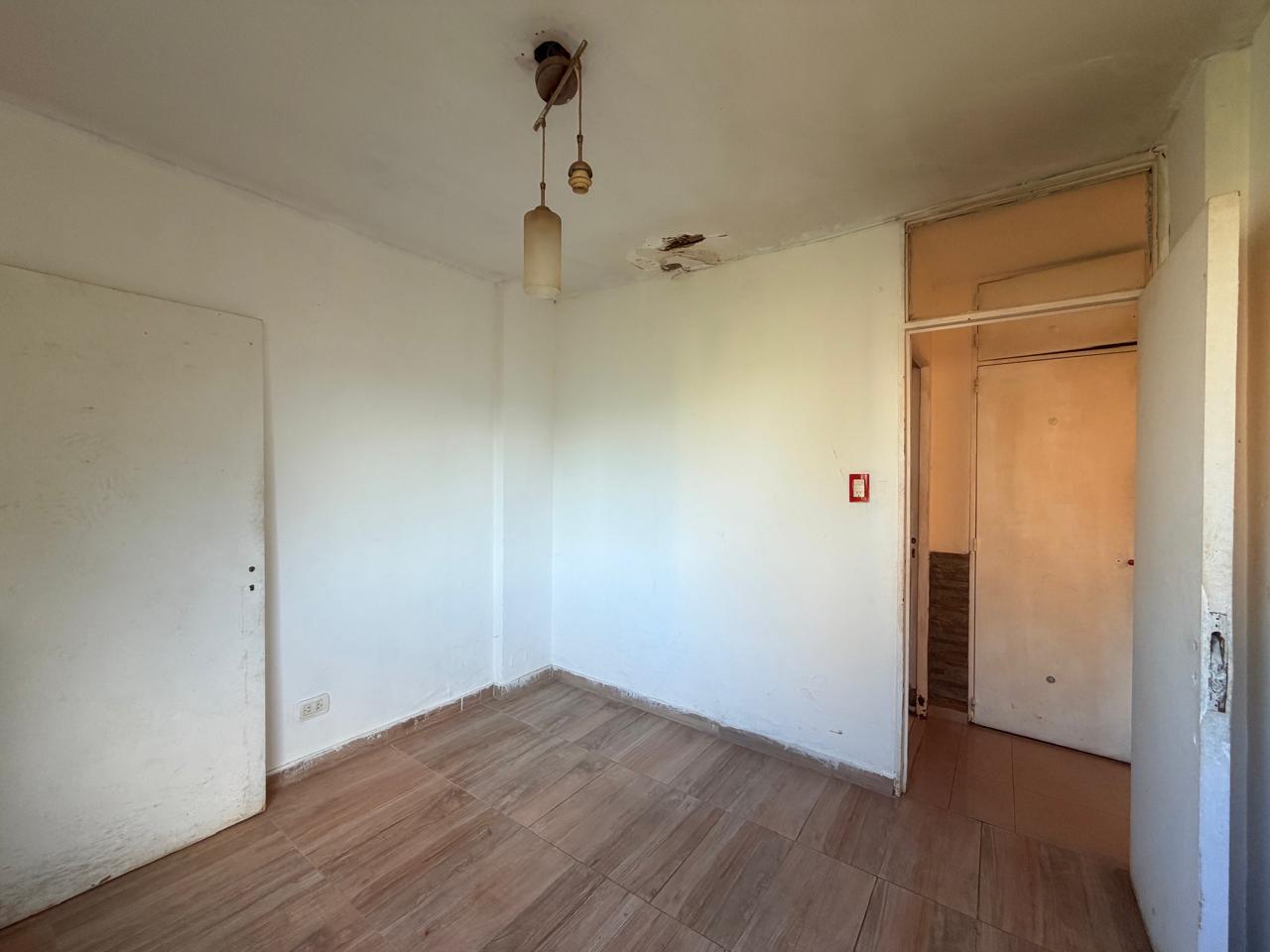 Tiene originalmente cuatro ambientes, hoy una habitación se integró al living. Otros dos dormitorios. Cocina integrada al living comedor, pasillo de distribucion con placard y baño completo.