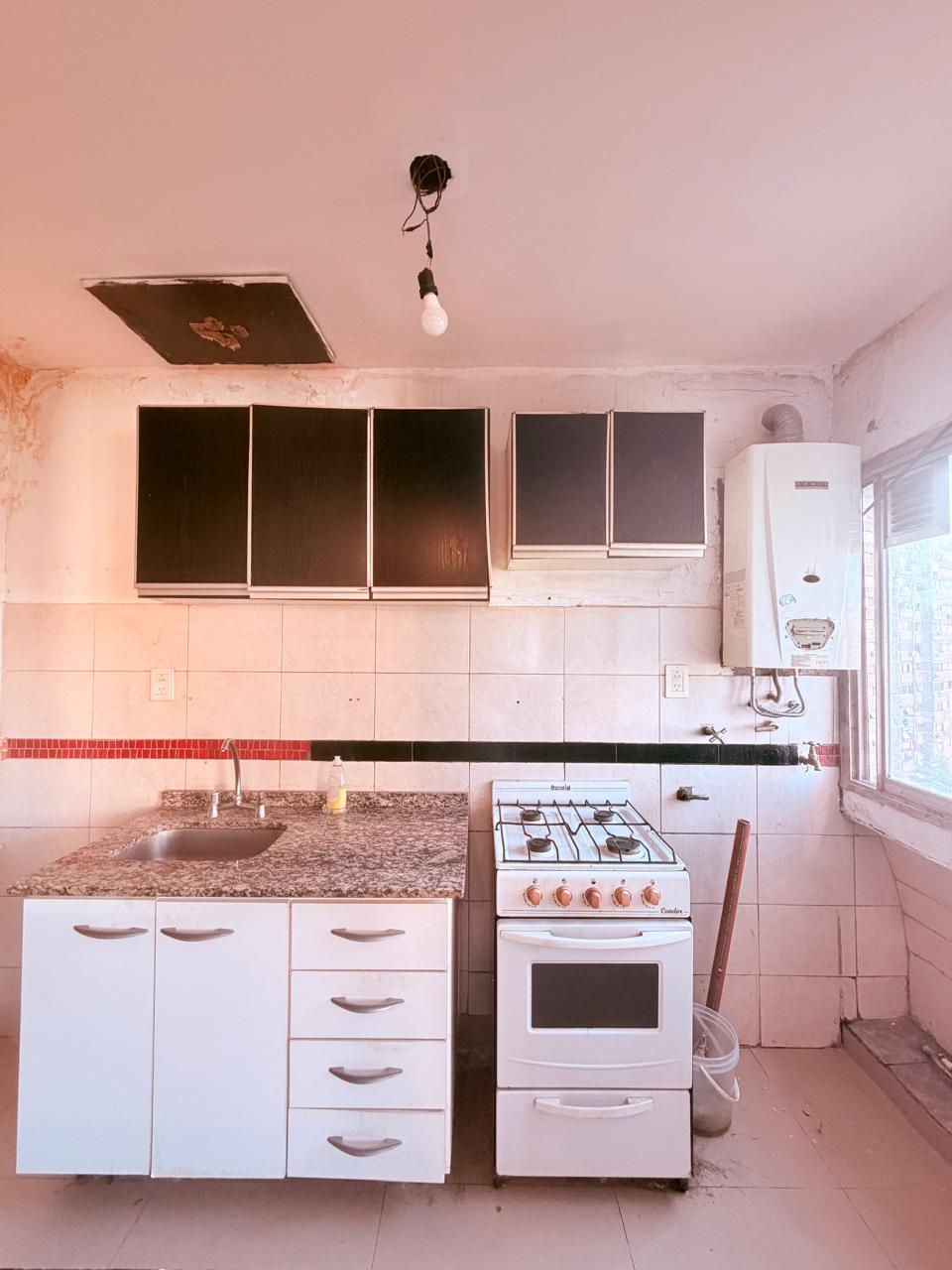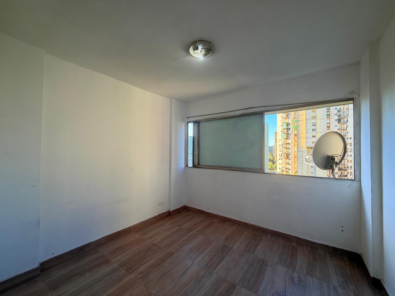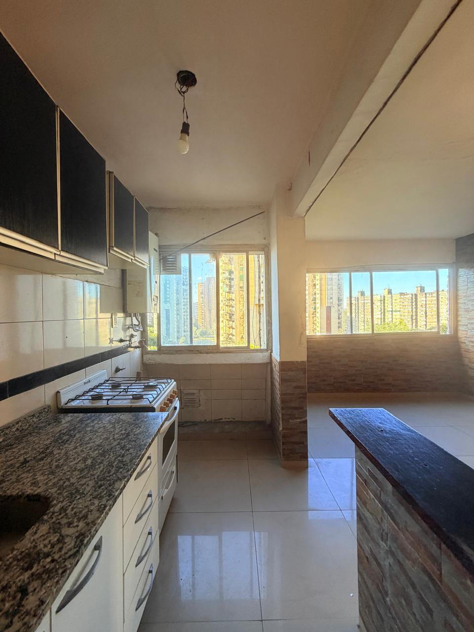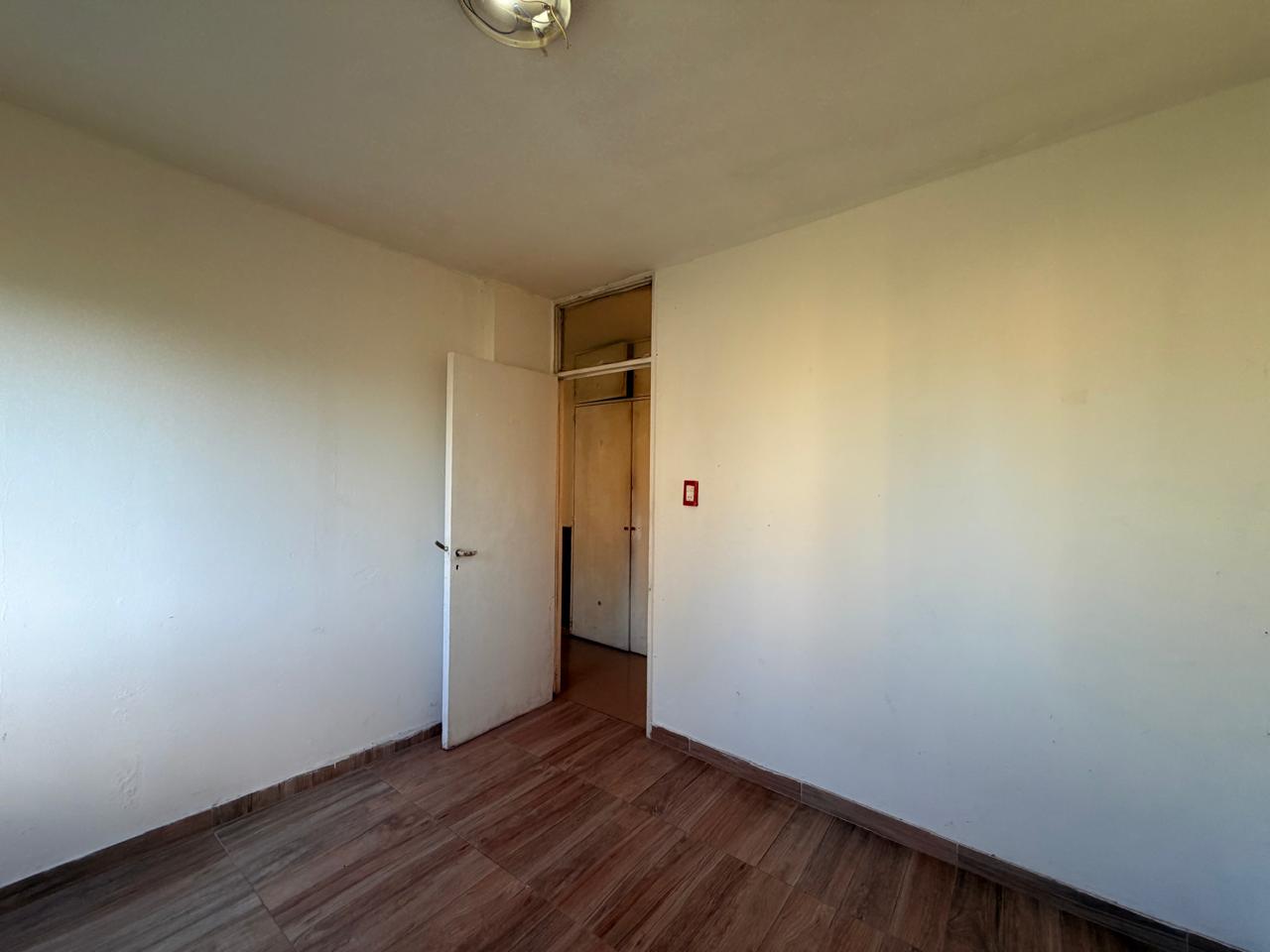 Tiene originalmente cuatro ambientes, hoy una habitación se integró al living. Otros dos dormitorios. Cocina integrada al living comedor, pasillo de distribucion con placard y baño completo.